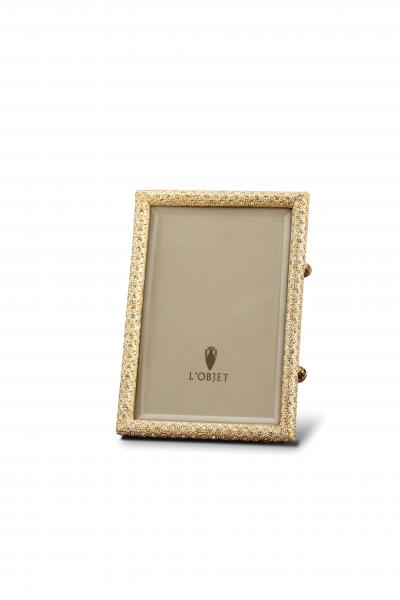 Emulating centuries of fine jewelry design and technique, every L'OBJET frame is meticulously handcrafted with details as Swarovski crystals, 24K gold or platinum plating, beveled glass, satin lining and Italian leather backs. Available in Gold, Platinum, or Noir.