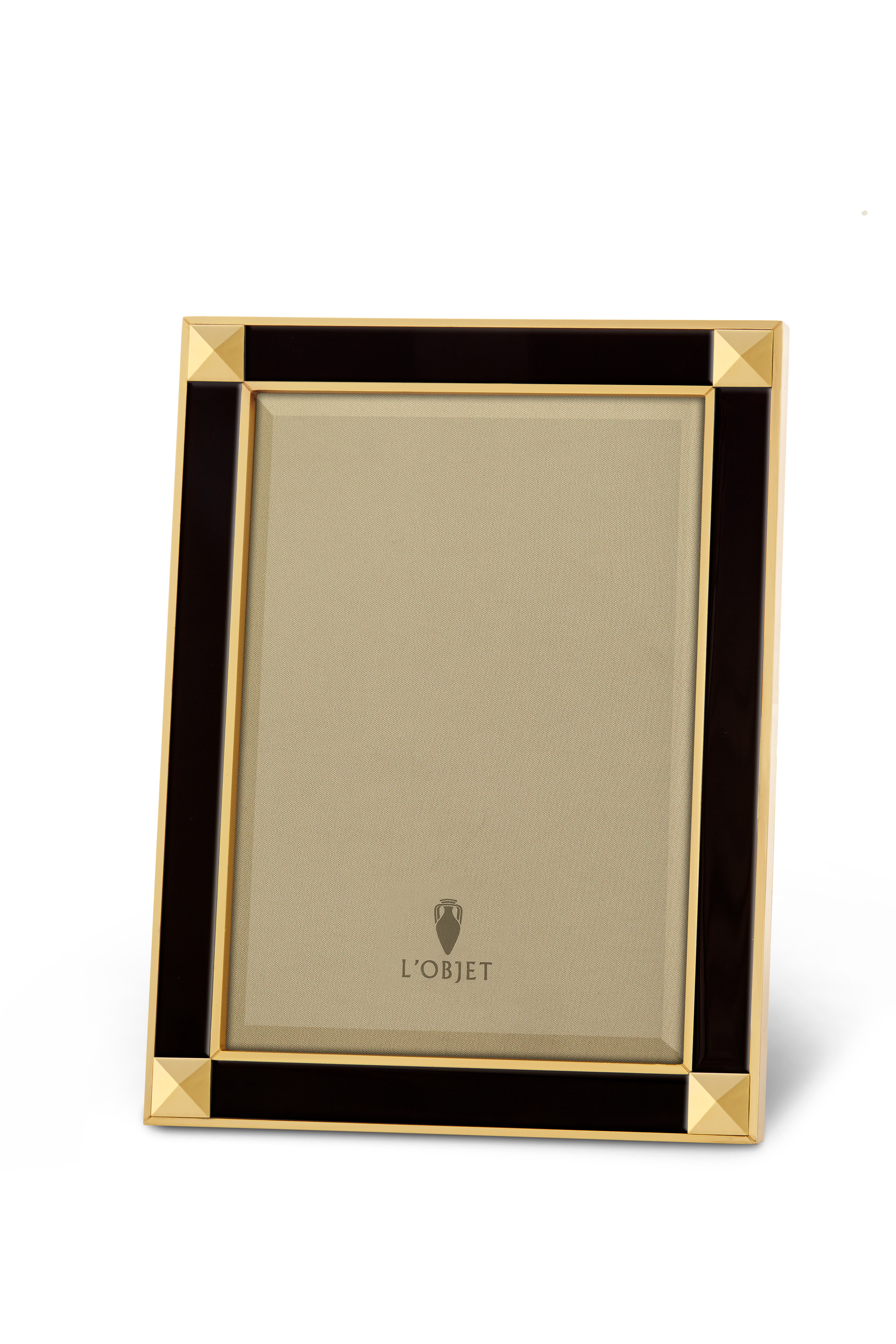 Emulating centuries of fine jewelry design and technique, L'Objet frames are meticulously handcrafted and incorporate details such as Swarovski crystals, 24K gold and platinum plating, beveled glass, satin lining and Italian leather and suede backs with beautifully detailed closures. Presented in a luxury gift box.