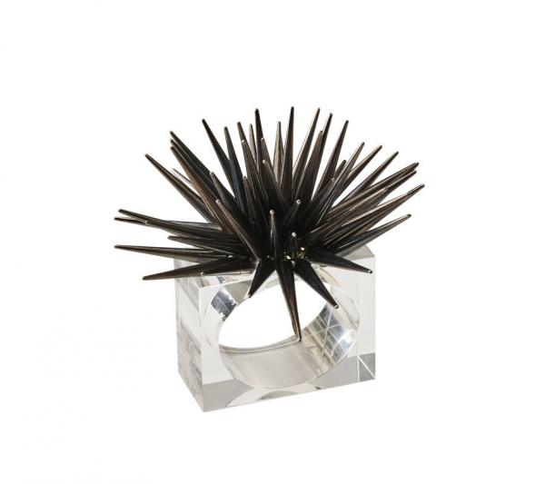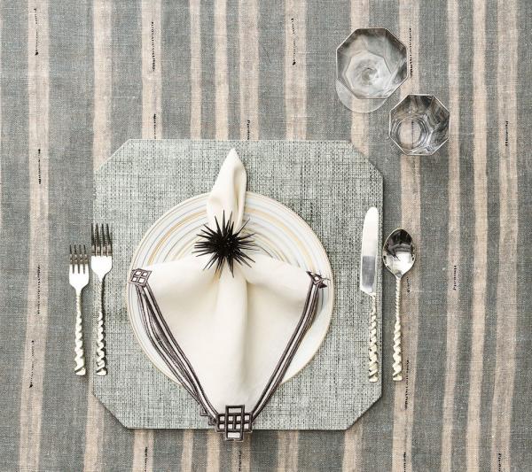 The sea urchin as a decorating motif is one that transcends trends in home design. It's become a staple and we have added it to our napkin ring collection. The Astrid napkin ring has that modern midcentury feel, but can also work on nautical-themed tables, as well as on festive table settings, because of its metallic sheen.