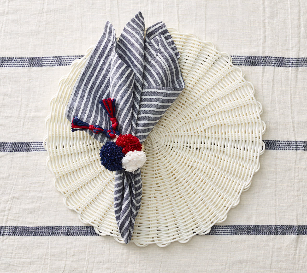 Picasso and Audrey Hepburn both famously made the sailor shirt a wardrobe staple. Our Bateau napkin is our interpretation of this nautical motif. Perfect for al fresco dining or for lunches on board mega yachts.