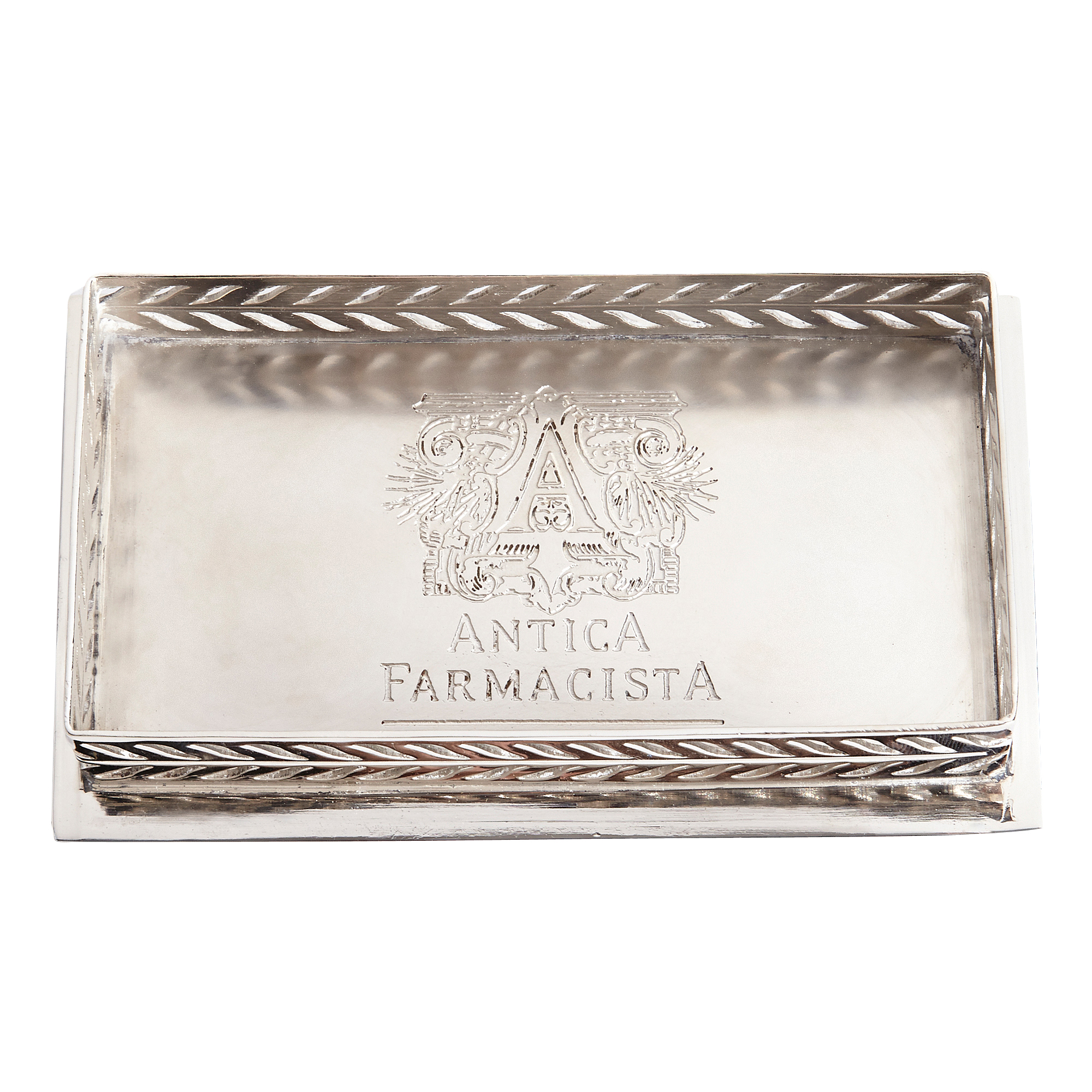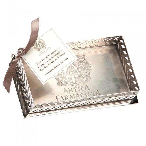This detailed, nickel-plated tray is the perfect complement for your Antica Farmacista home ambiance, bath and body products. Its polished look is ideal for a powder room, kitchen or any refined space in your home.