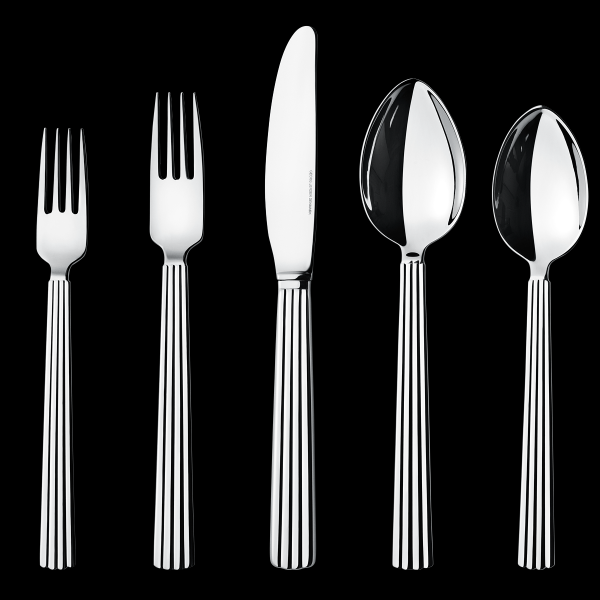 With its graphic Art Deco fluting and beautiful proportions, Bernadotte cutlery has stood the test of time to become a true classic. This 5 piece contains one dinner fork (3609012), one long dinner knife (3609014), one dinner spoon (3609011), one lunch fork (3609022) and one dessertspoon (3609021), making the perfect starting point to build a larger collection. Swedish royal prince Sigvard Bernadotte was one of Georg Jensen’s first collaborators. Strongly influenced by the prevailing functionalist movement, Bernadotte’s work is characterised by classic and sophisticated design that never forgets practicality. His pieces for Georg Jensen have become truly timeless. Made from stainless steel, the cutlery set has a mirror-polished finish that adds the perfect finishing touch to any table setting.