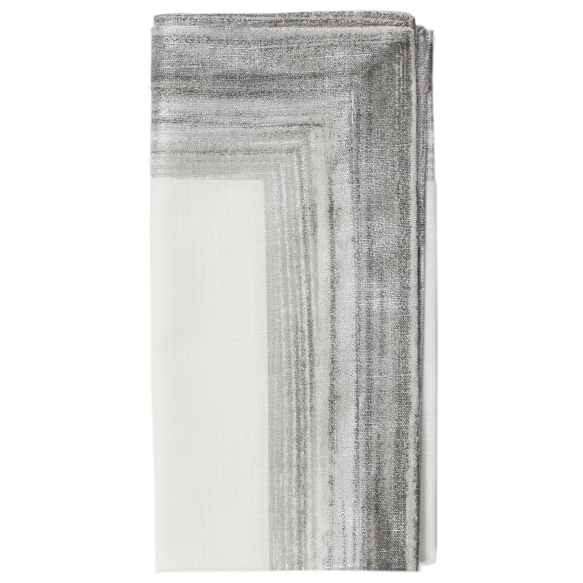 Cornice cotton napkins in Platinum have a metallic printed border.