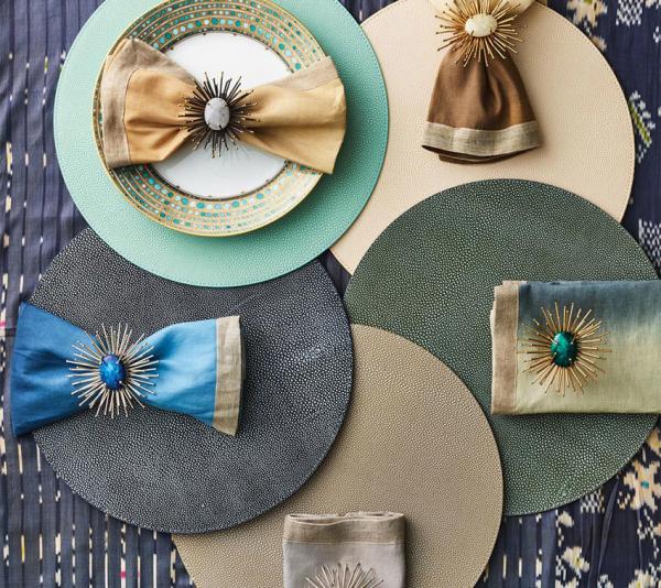 A unique use of color bumps the design of these napkins up a few notches. Each is hand-crafted by the finest artisans in India. Variations in density and depth of color are to be expected.