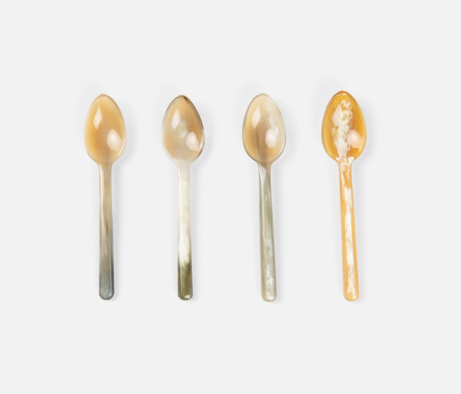Carved horn mini spoons with one-of-a-kind variations and design.