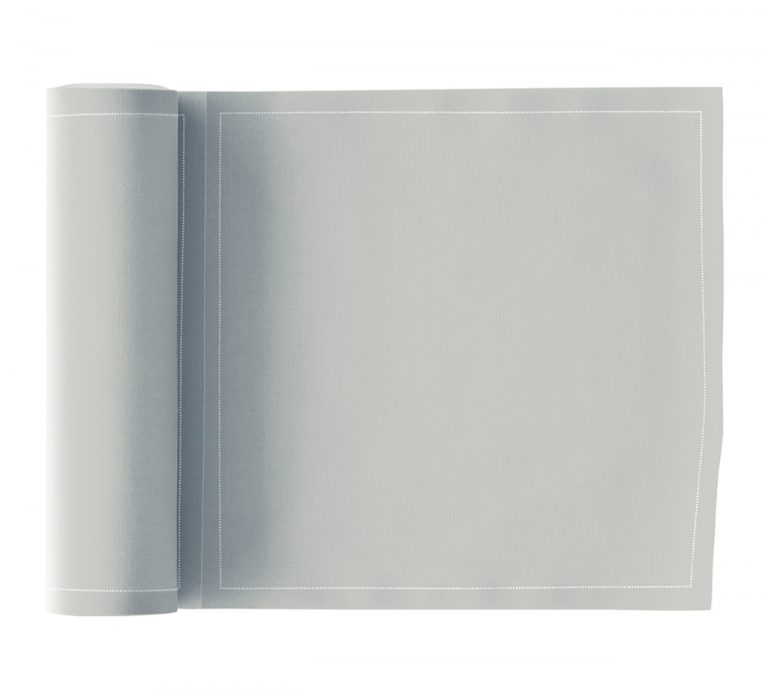 Roll of 25 fabric napkins of 8"X8" in grey and 100% cotton.