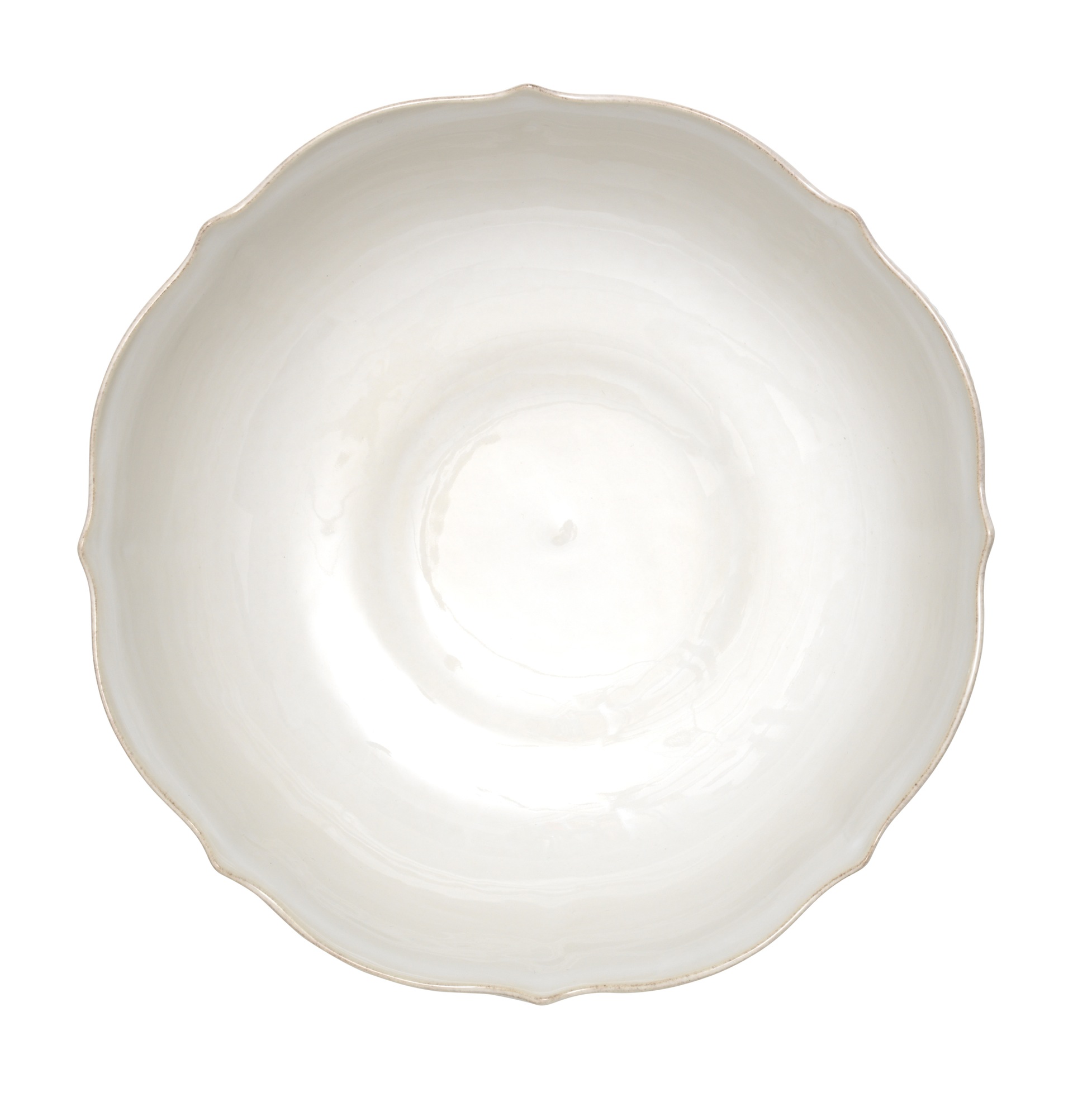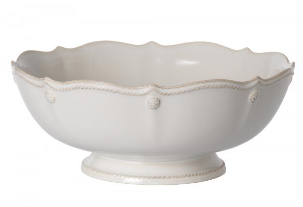 Whether used as a centerpiece or a serving piece, the footed fruit bowl makes the perfect statement. Timeless in white, its scalloped edge and signature berry and thread motif provide a subtle backdrop for the contents within
