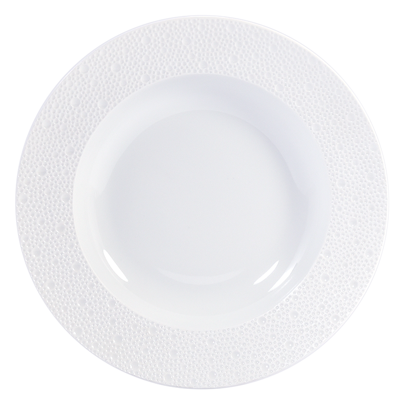 The "Ecume White" dinner service from Bernardaud has an attractive surface structure with a very tactile appeal. The sea provided the inspiration for the design of this fine Limoges porcelain - or, more precisely, the traces that its waves leave on a fine sandy beach.
