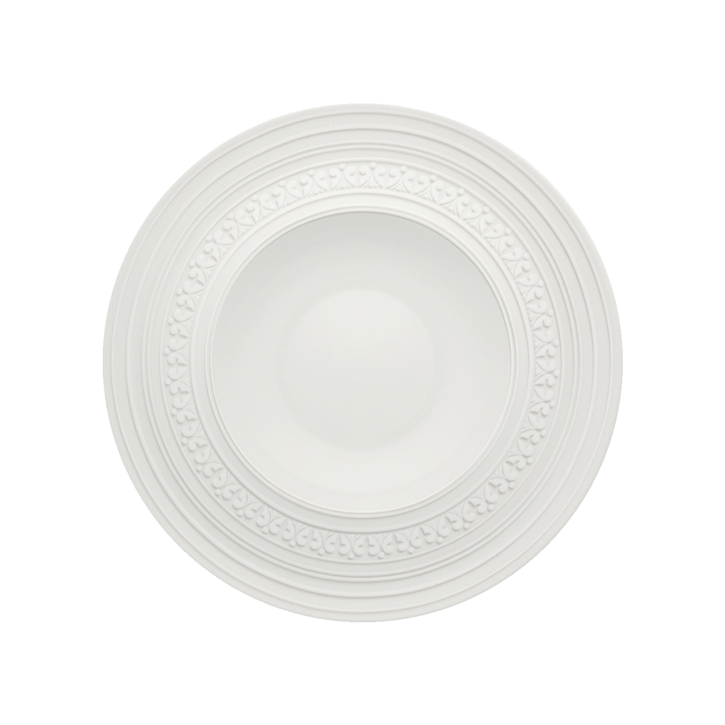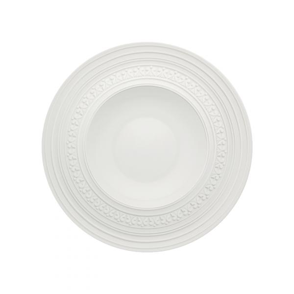 Inspired by the ceiling decorations of the Vista Alegre Palace in Portugal, the Ornament collection features an elegant white on white design. The pattern seems as if it's lifting out of the base because of the very delicate grey touch that highlights the shadow. This elegant collection will transform any formal meal into a spectacular royal gala.