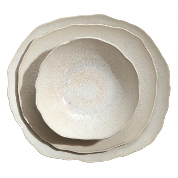 The signature scalloped edge, hand cut for an irregular and organic look, were inspired by waves and clouds. Combining French savoir-faire and natural organic inspiration, the Plume collection will add a touch of nature to your table.