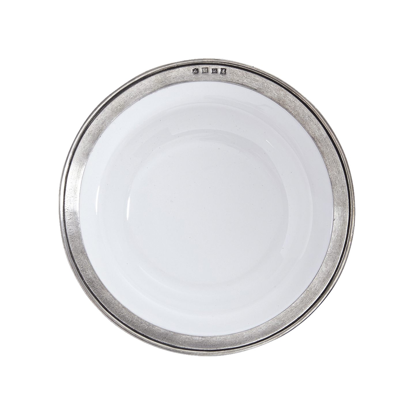 This Match Pewter - Convivio Bowl is white ceramic with a pewter rim. It's large enough to be used for both a soup bowl, or to serve your favorite pastas.