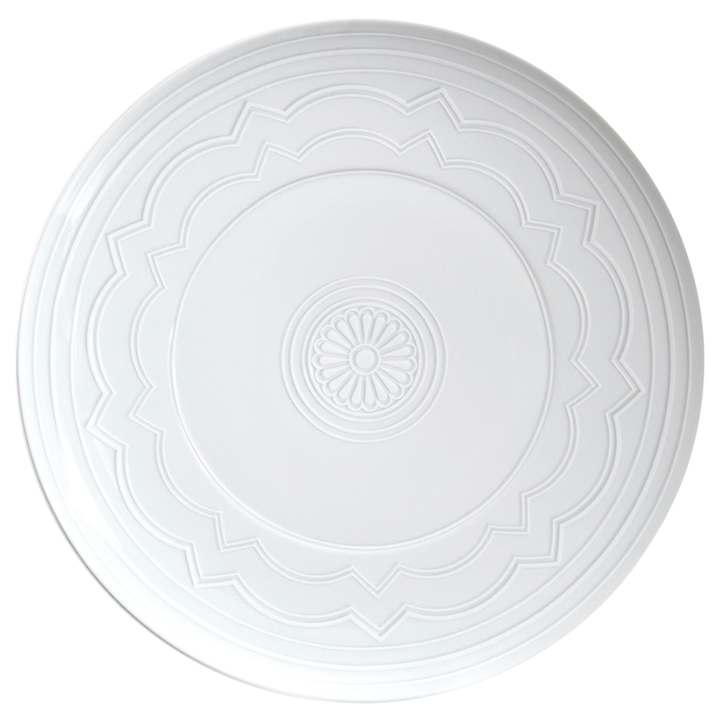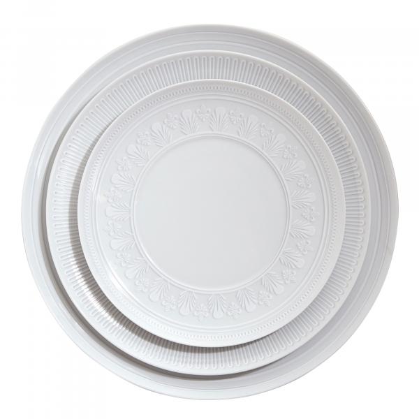 Inspired by the ceiling decorations of the Vista Alegre Palace in Portugal, the Ornament collection features an elegant white on white design. The pattern seems as if it's lifting out of the base because of the very delicate grey touch that highlights the shadow. This elegant collection will transform any formal meal into a spectacular royal gala.