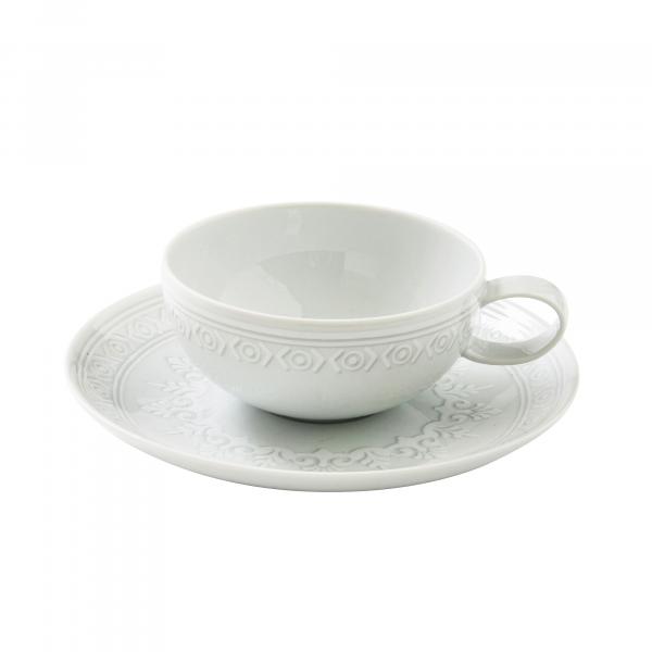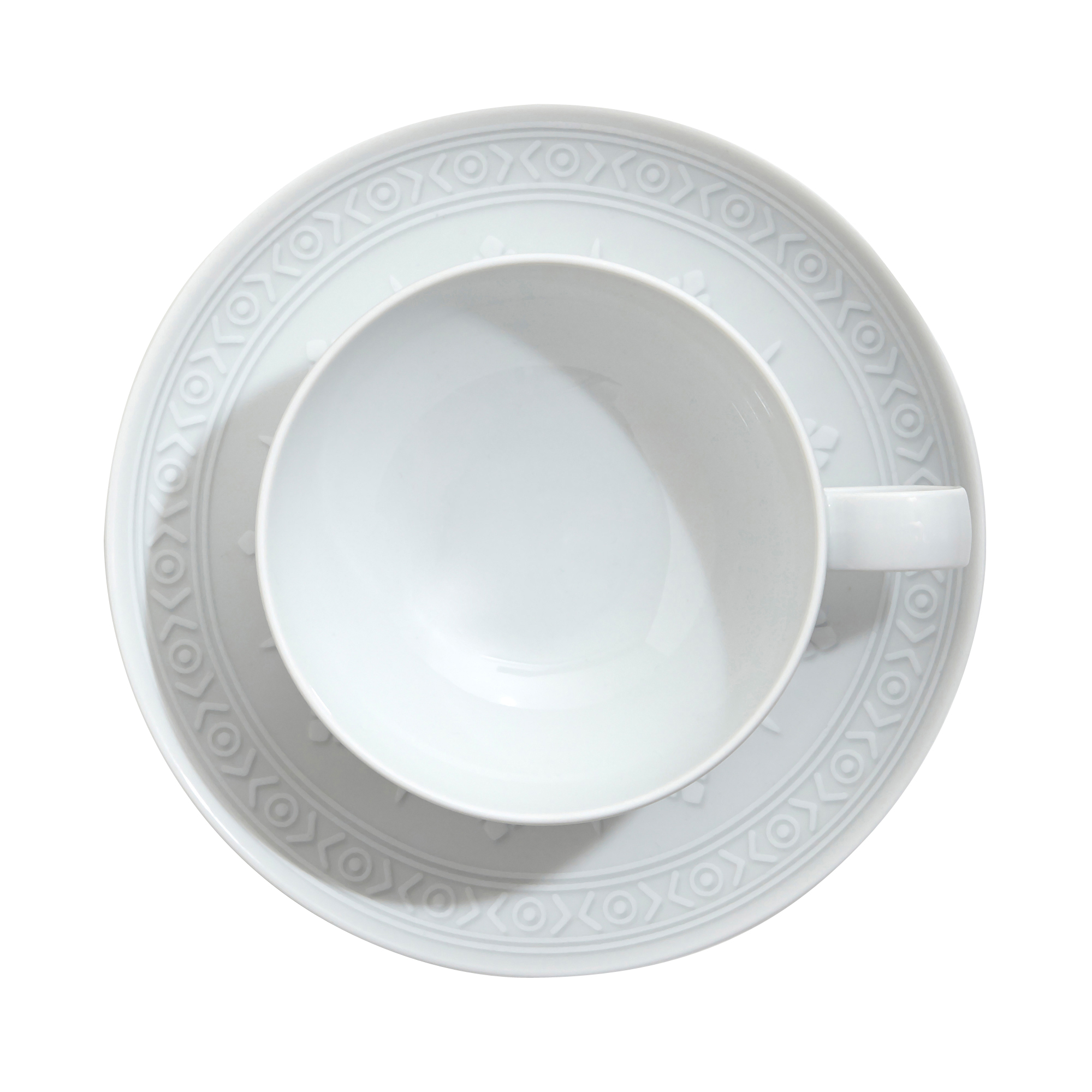 Inspired by the ceiling decorations of the Vista Alegre Palace in Portugal, the Ornament collection features an elegant white on white design. The pattern seems as if it's lifting out of the base because of the very delicate grey touch that highlights the shadow. This elegant collection will transform any formal meal into a spectacular royal gala.