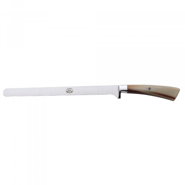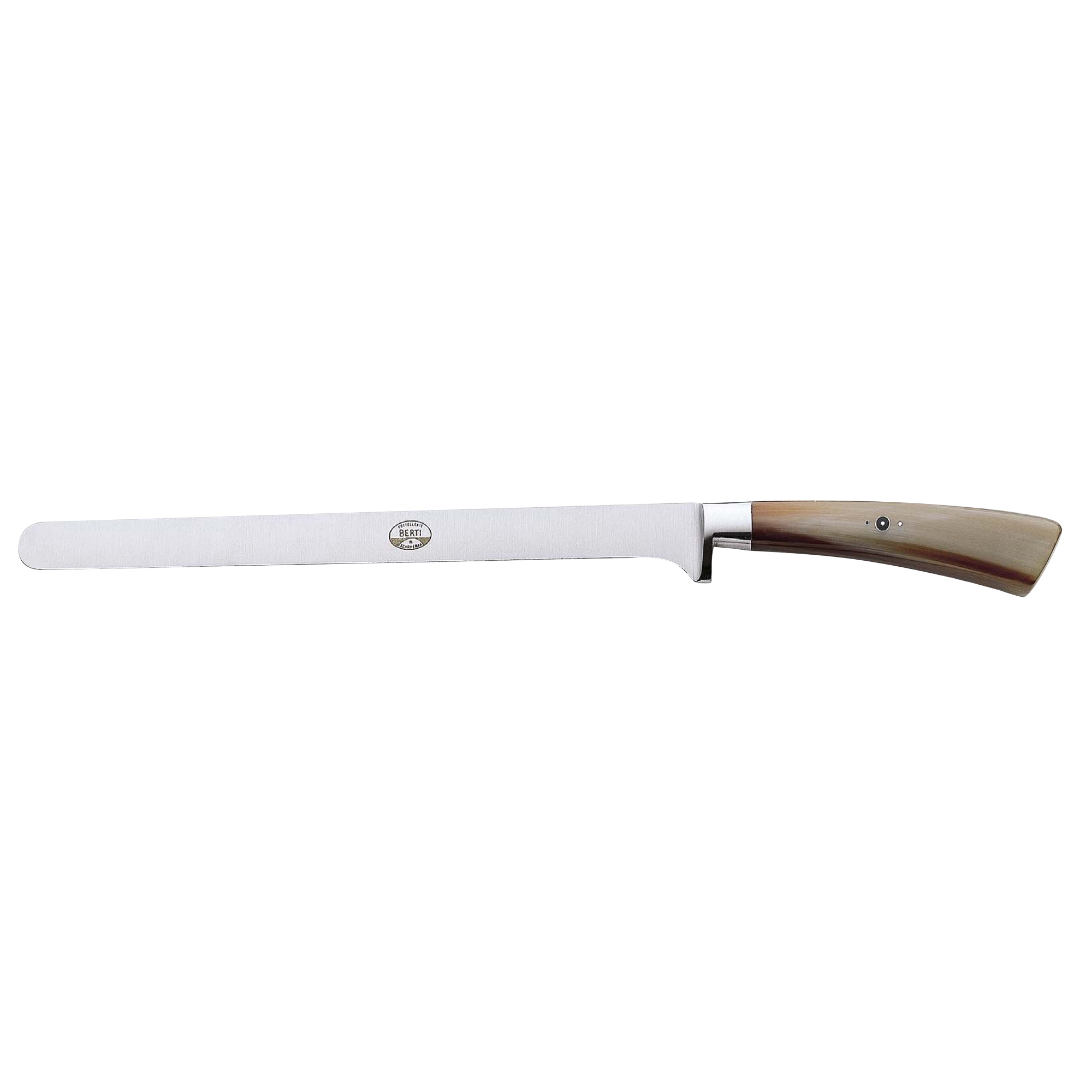 The Berti ham and prosciutto slicer is a very narrow and thin slicing knife that's ideal for extremely thin slicing of cured hams like prosciutto.