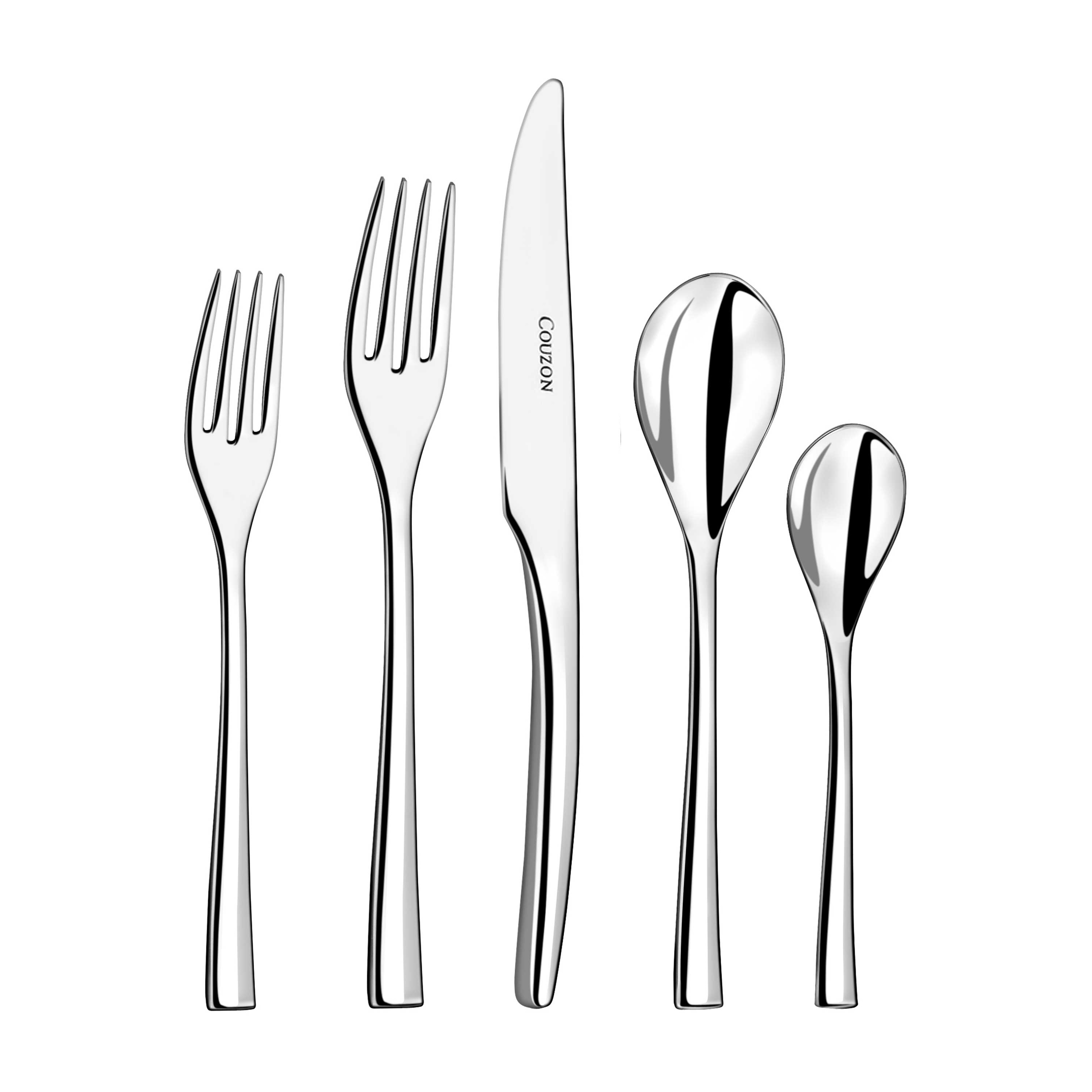 Flatware by Couzon features a heavy weight and contemporary curves for the modern table. The signature offset knife blade feels very natural in the hand. Perfectly balanced, superior 18/10 quality.