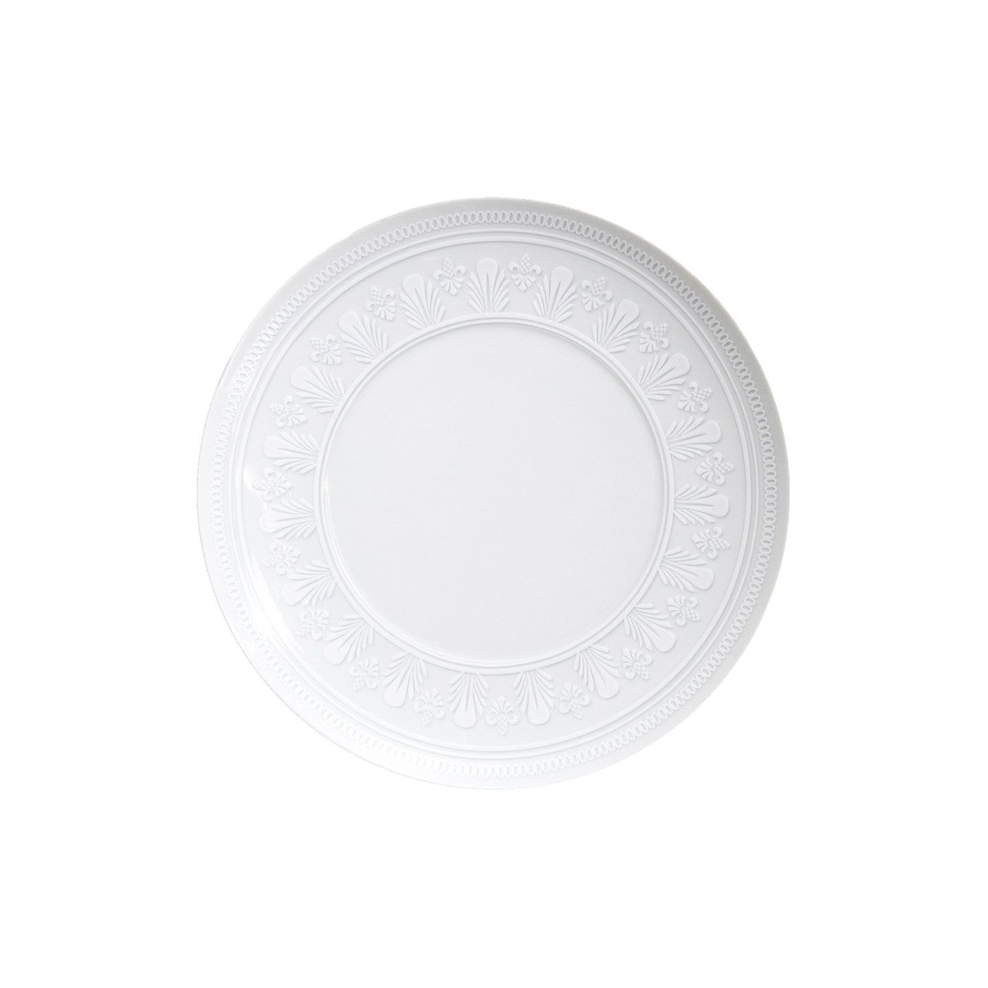 Inspired by the ceiling decorations of the Vista Alegre Palace in Portugal, the Ornament collection features an elegant white on white design. The pattern seems as if it's lifting out of the base because of the very delicate grey touch that highlights the shadow. This elegant collection will transform any formal meal into a spectacular royal gala.