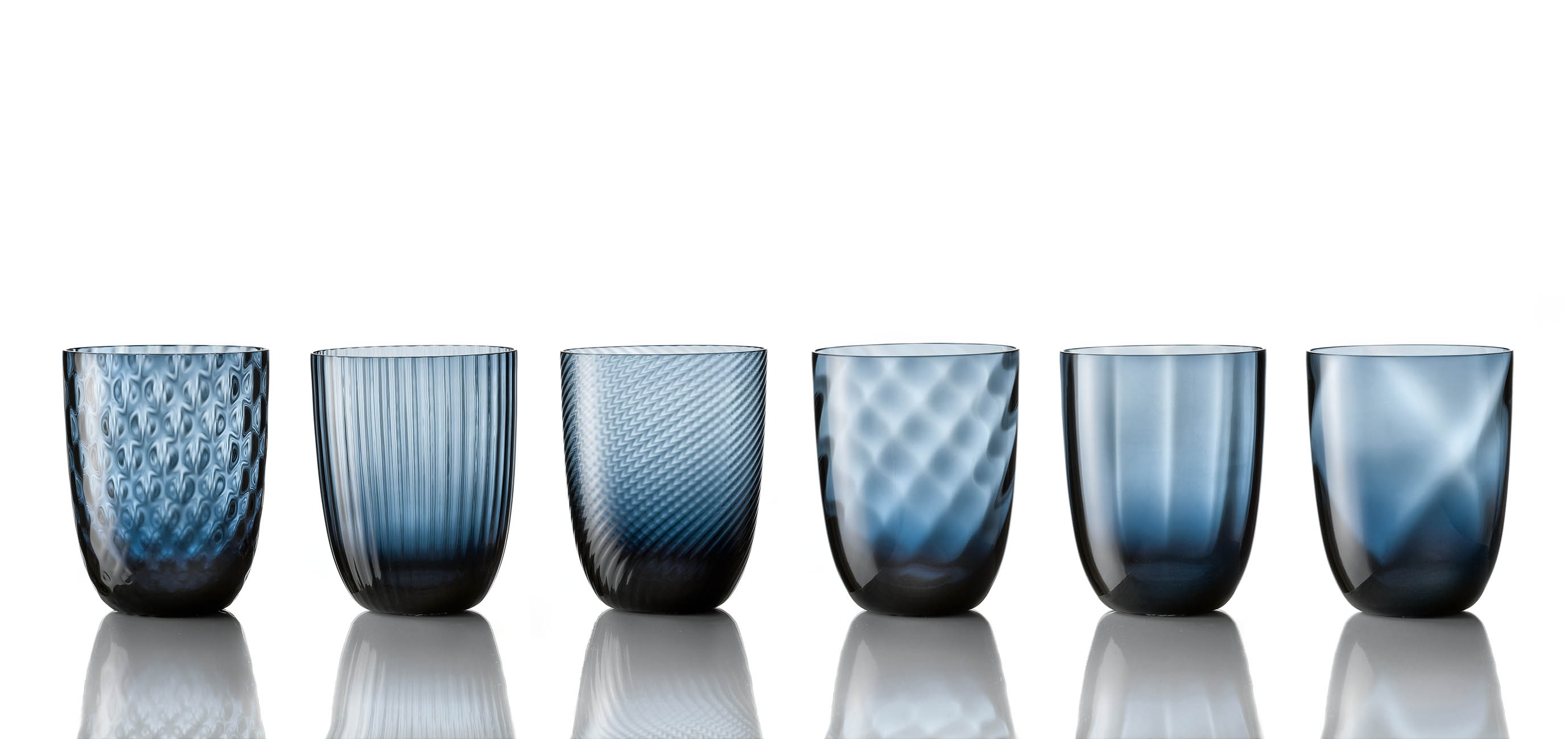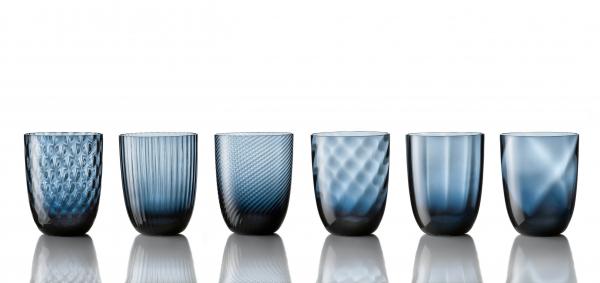 Nason Moretti's mouth-blown Idra collection of six tumblers marries traditional Murano glassblowing techniques with a contemporary easthetic. The set includes 6 glasses in a beautiful blue color. Each color, in the time-honoured tradition of Italian glassmaking, is made by mixing ingredients by hand, which enables the master designer to achieve the precise shade desired.
