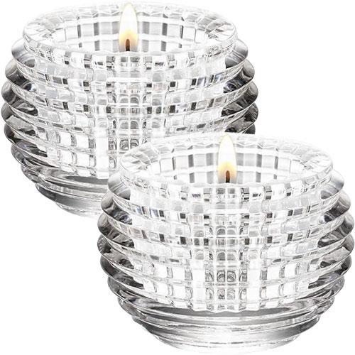 The Eye votive is exceptional in the way it reflects candle light. The horizontal cuts outside and the vertical cuts inside are a special feature of this collection, which also includes rectangular and oval vases.