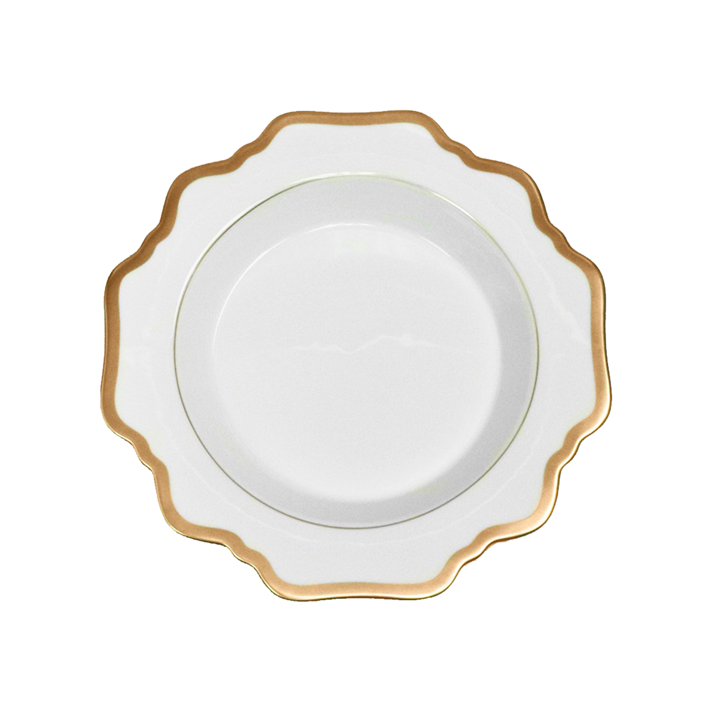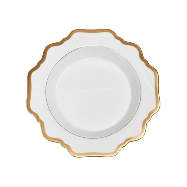 Defined by graceful silhouettes and hand-painted gold rims, this plate from Anna Weatherly adds a charming element to the table. Pair with more lavish pieces from Anna’s assortment, or more simple accessories for an understated elegance.
