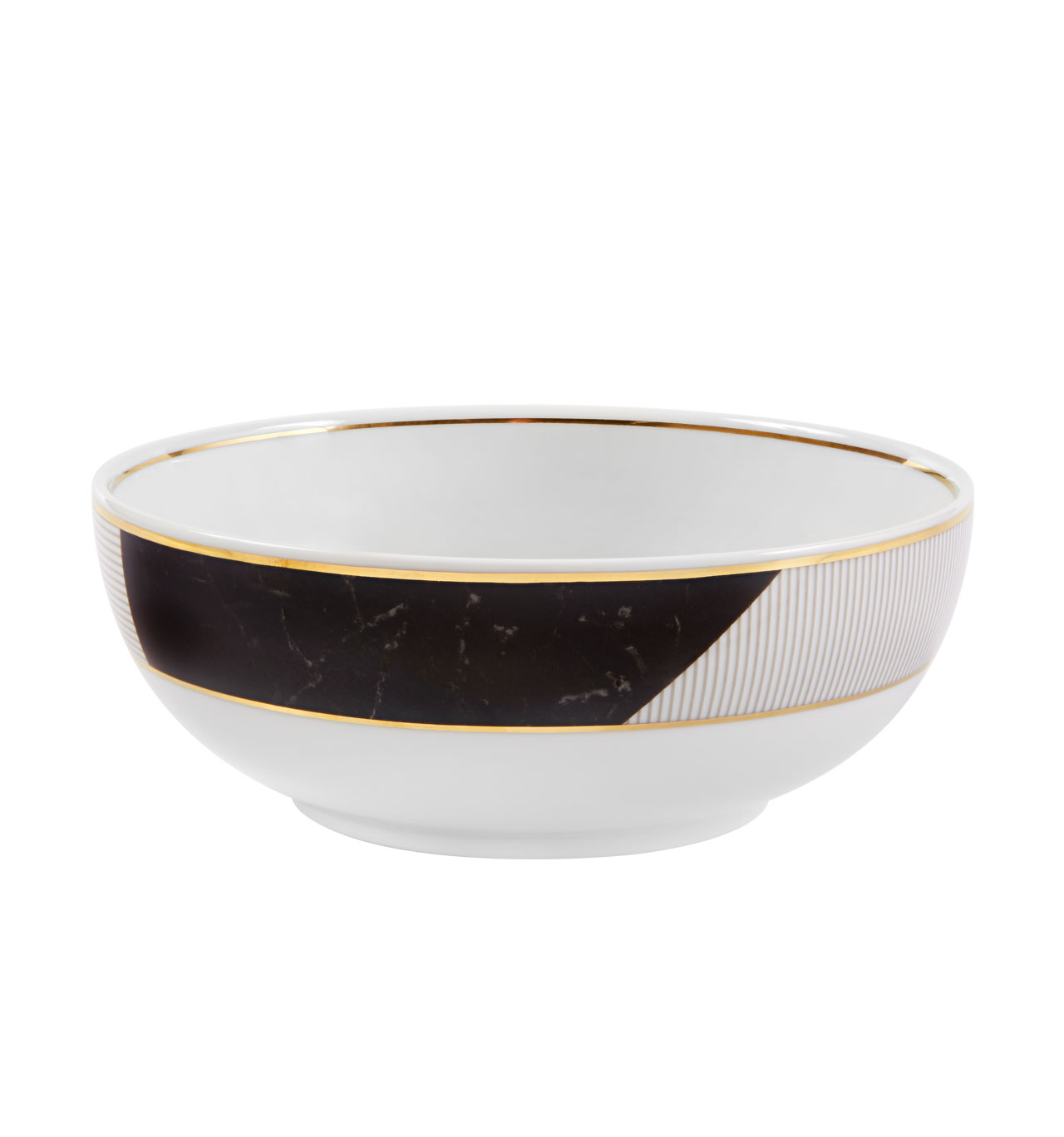 The combination between porcelain and drawings inspired by the noble marble of Carrara, a very refined, geometric approach, creates the illusion that each piece of the set is interchangeable.