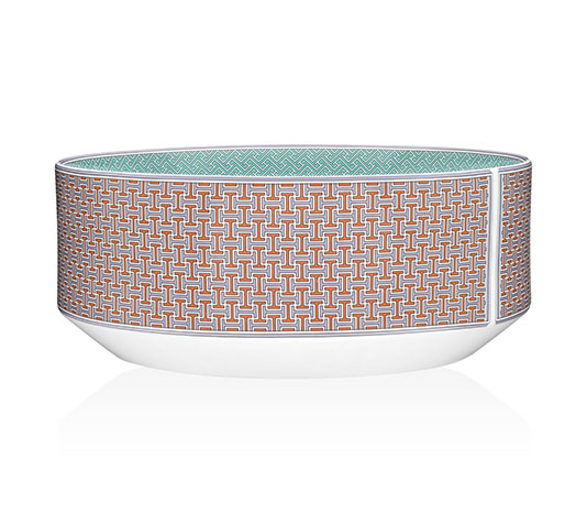 Playful and bold, the Hermès Tie-Set Collection takes inspiration from the geometric micro-patterns of the company’s iconic ties and lends itself to infinite combinations. 34-pieces can be mixed, matched and mismatched — anything goes with twenty designs and twenty colors. While none are alike, all harmonize in a joyous, eclectic display for everyday or special occasions.