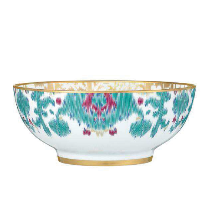 Hermès dinnerware adds a luxurious, yet functional touch to any table. At once playful and refined, the enduring designs are haute couture for the home. The saturated colors and accents of 24-carat matte gold found in Voyage en Ikat are drawn from the exquisite weaving and dyeing technique that originated in Asia.