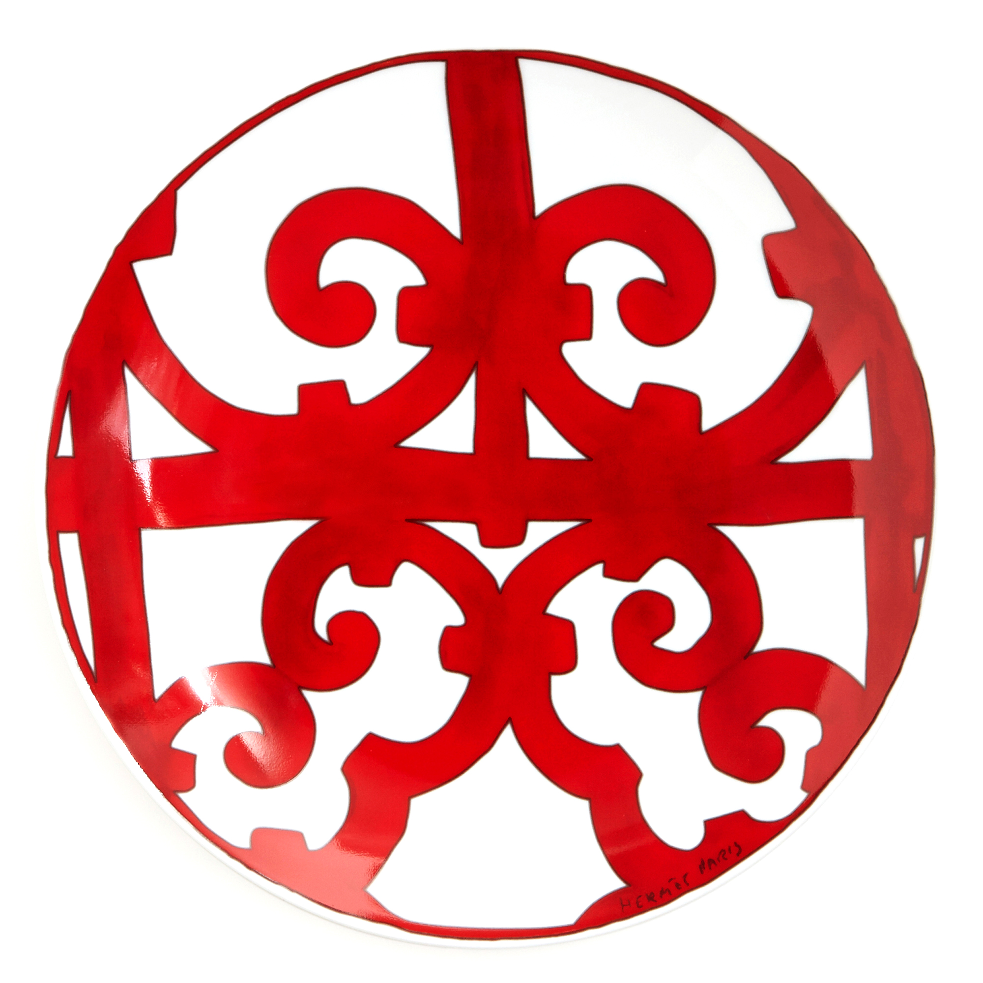 Graphic and bold, the scenery recalls the ironwork of Andalusian towns. The sturdiness of the drawing, the vitality of the red and the wealth and variety of the pieces make it a noble table service.