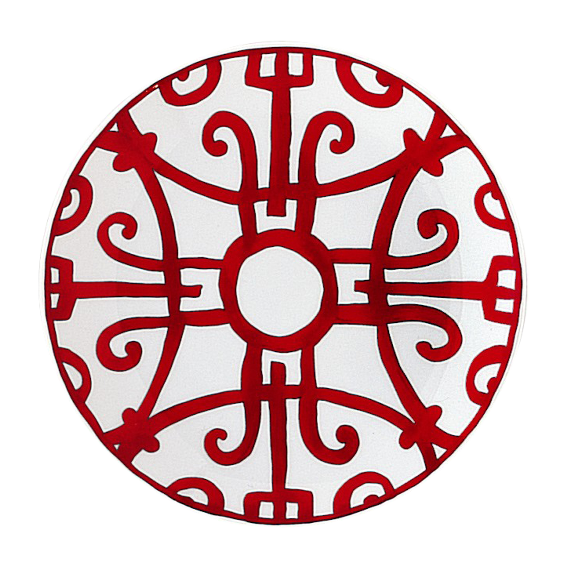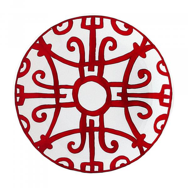 Graphic and bold, the scenery recalls the ironwork of Andalusian towns. The sturdiness of the drawing, the vitality of the red and the wealth and variety of the pieces make it a noble table service.