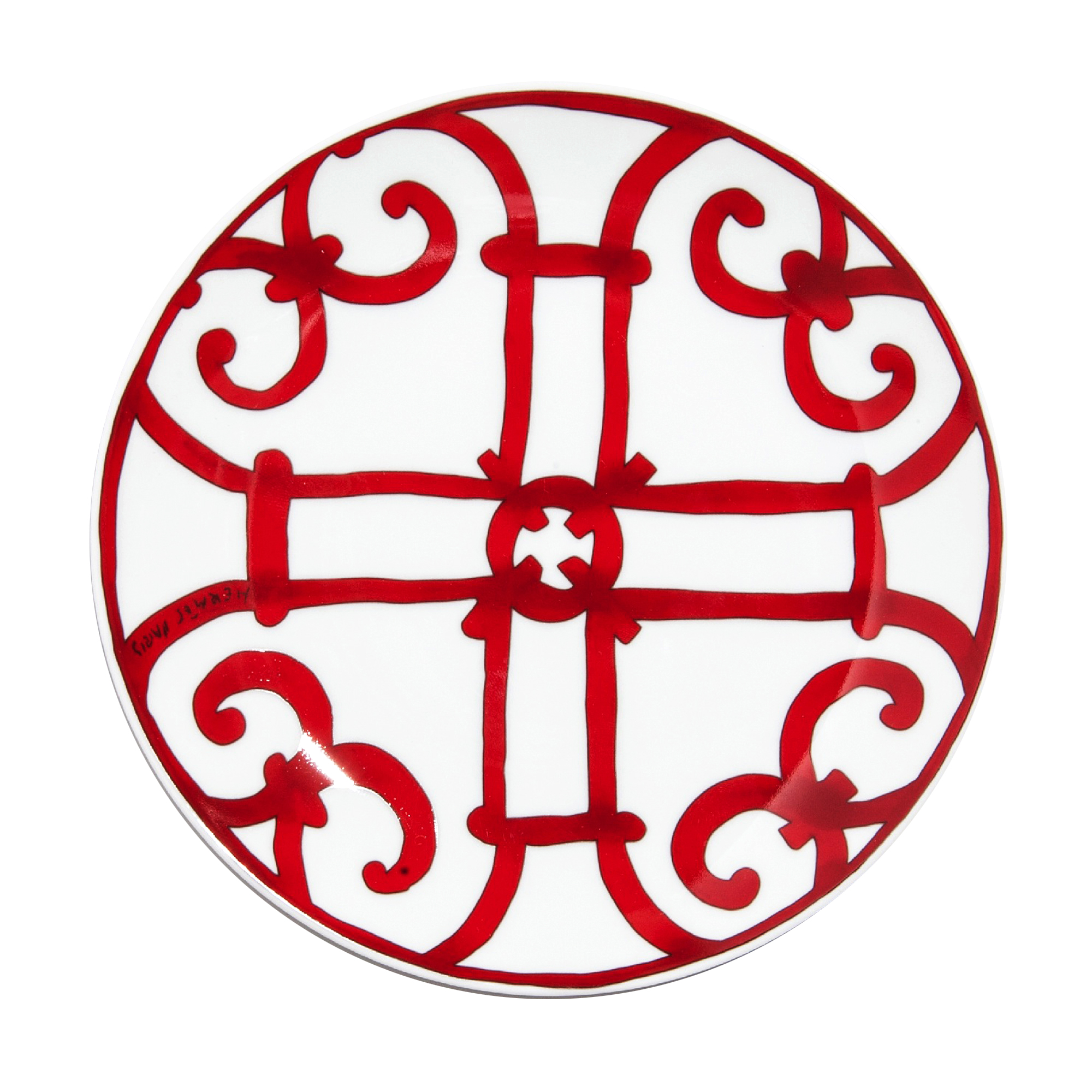 Graphic and bold, the scenery recalls the ironwork of Andalusian towns. The sturdiness of the drawing, the vitality of the red and the wealth and variety of the pieces make it a noble table service.
