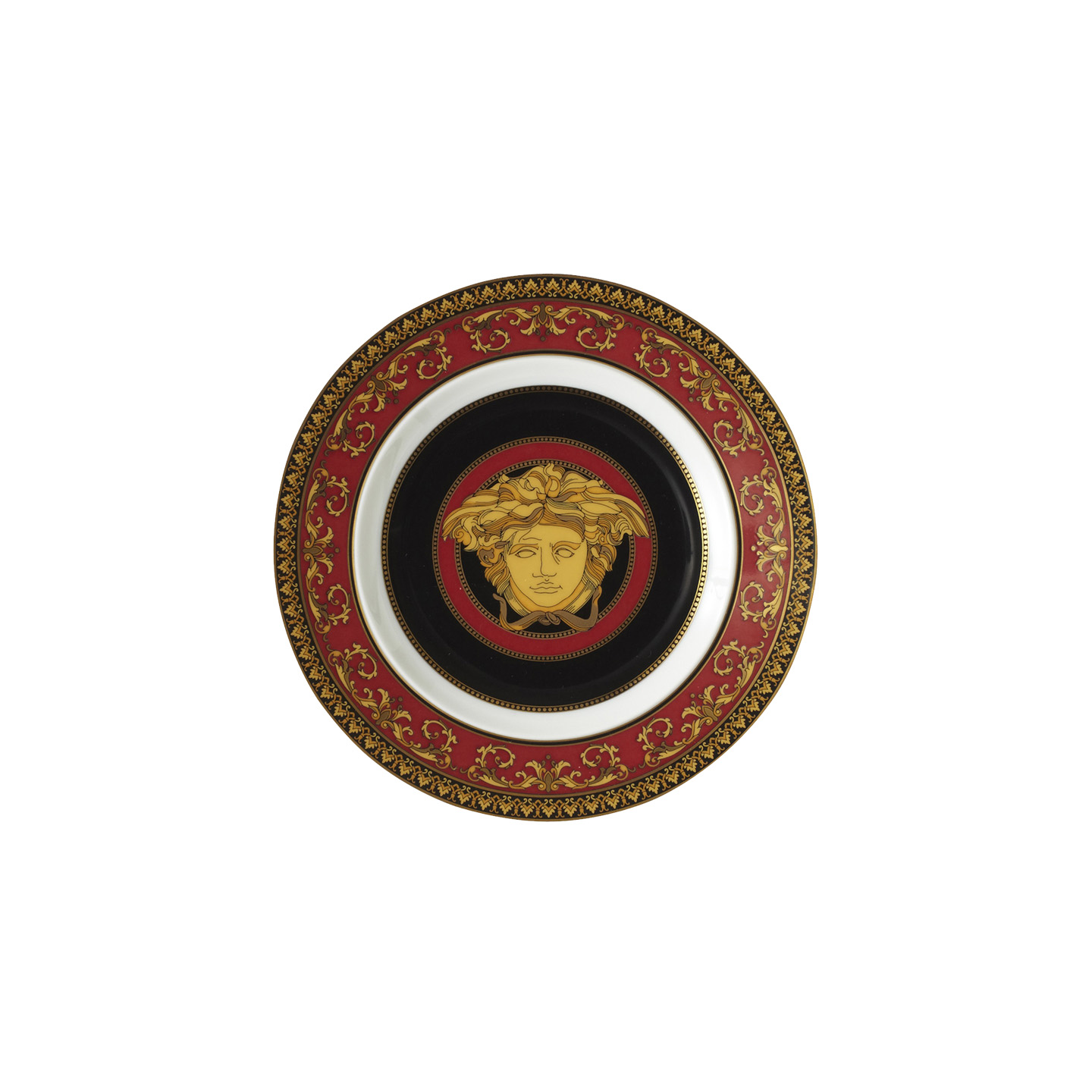 The Medusa collection by Gianni Versace reflects the unmistakably rich, color-intensive world of Versace. The main focal point is a magnificent, gold-colored Medusa head, surrounded by ornate baroque decorations. This collection will serve as a brilliant and extremely elegant highlight for your table.