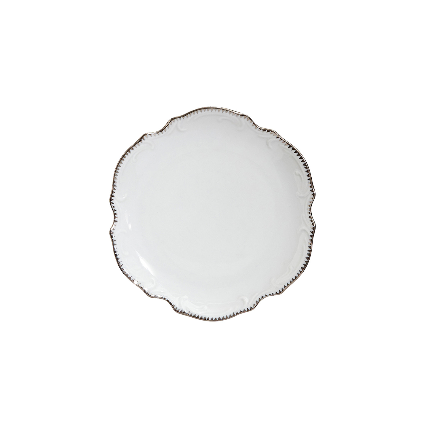 Porcelain with raised scroll motif and platinum edge