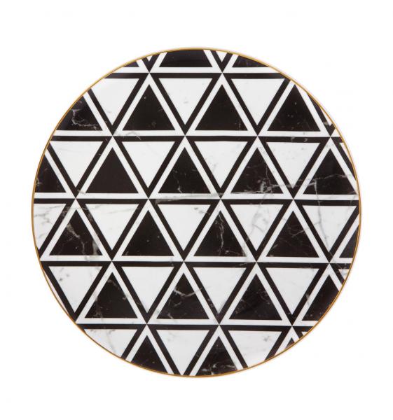 The combination between porcelain and drawings inspired by the noble marble of Carrara, a very refined, geometric approach, creates the illusion that each piece of the set is interchangeable.
