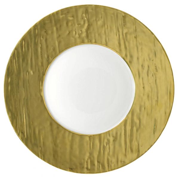 The Makassar dinnerware features a relief grain pattern in gold. The luxurious design is a great way to update your table.