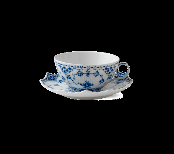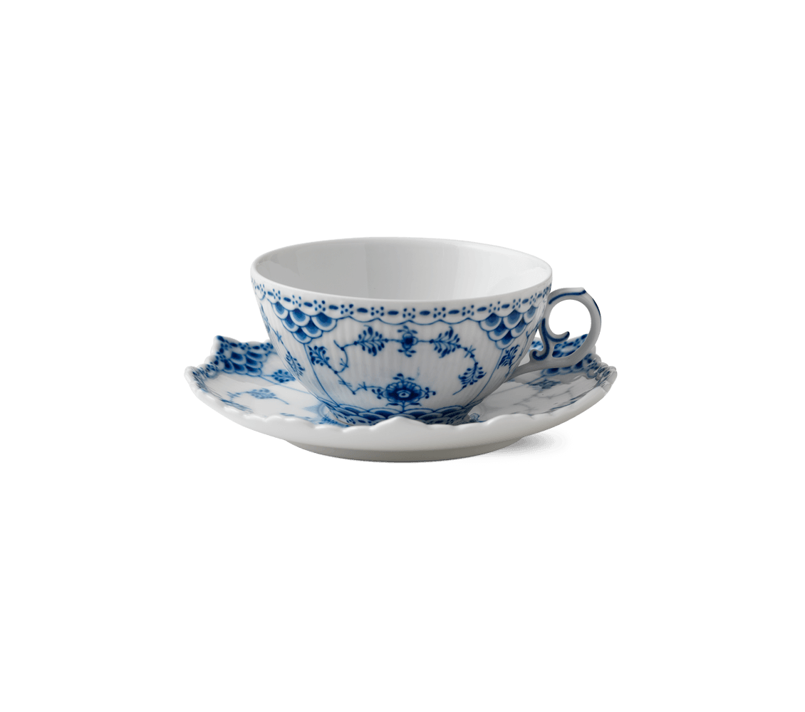 Formal Coffee & Tea Cups Blue Fluted Full Lace Cup and Saucer