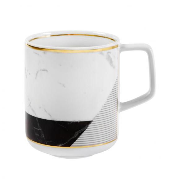 The combination between porcelain and drawings inspired by the noble marble of Carrara, a very refined, geometric approach, creates the illusion that each piece of the set is interchangeable.