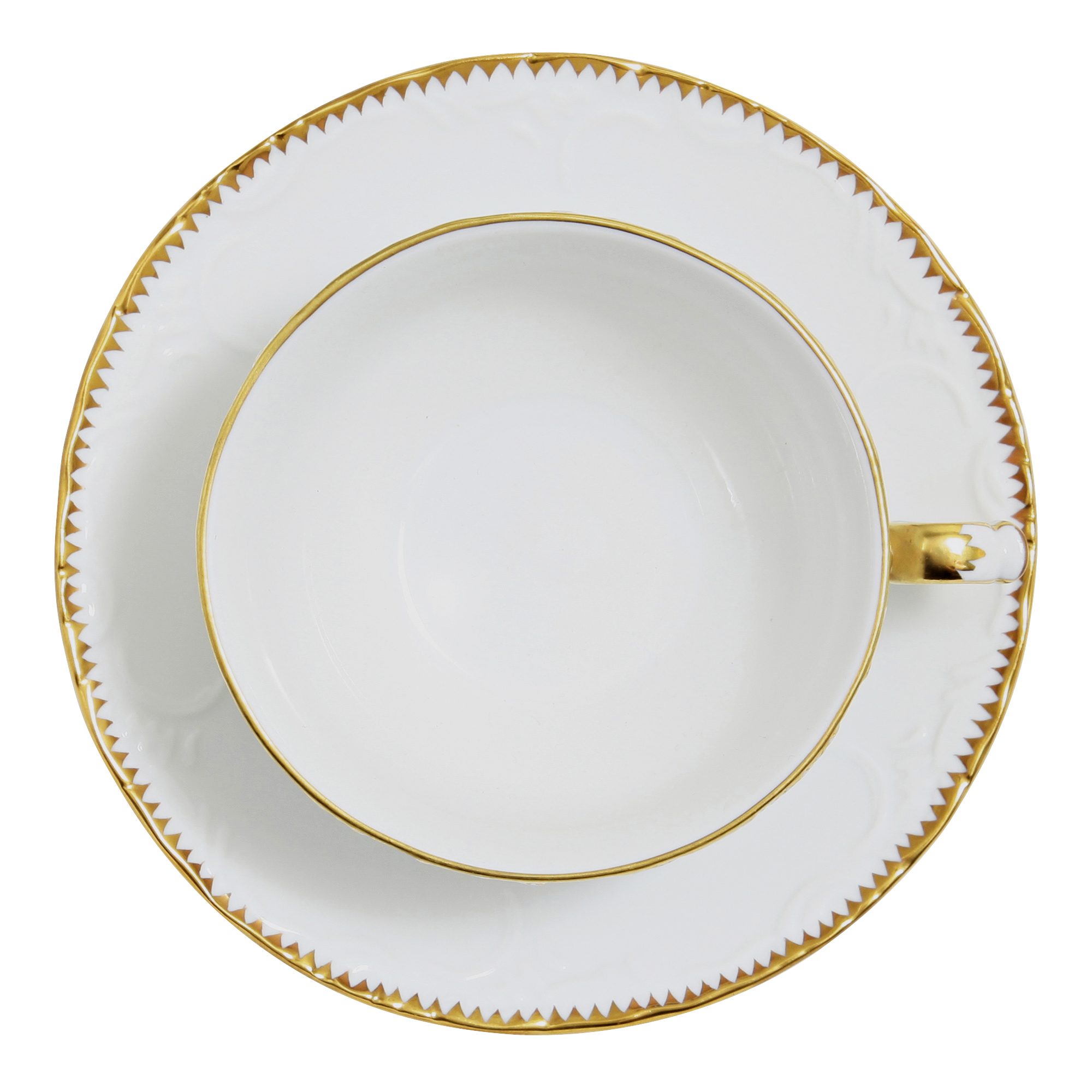 This is a simply elegant collection featuring Anna Weatherley's signature shark's tooth gold banding. The collection works beautifully with all of Anna's lavishly decorated offerings.