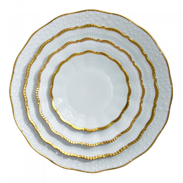 Compliment your seaside style with this whimsical dinnerware. Inspired by the texture of a round coral, each piece features a raised relief pattern of naturalistic bumps and ridges and an elegant gold rim.