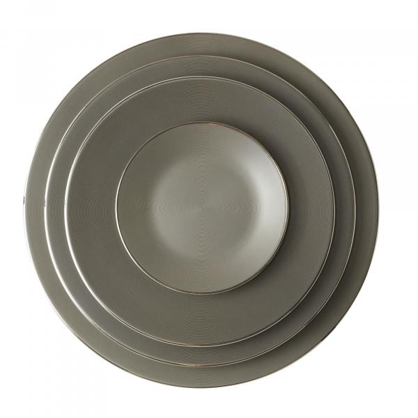 The Metallic collection has a rich, old-world luster that summons visions of grand European estates. It beautifully showcases a metallic rim design that makes it suitable for layering with other pieces.