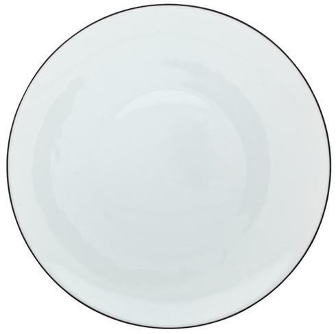 The edges of this elegant dinnerware are detailed with the slightest hint of black for a dramatic effect. The elegant pieces can be used alone to bring understated wit to the table or dressed up by mixing in with patterns.