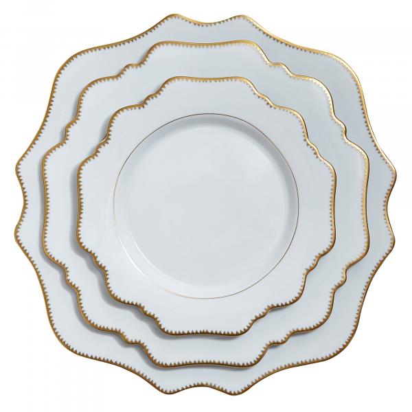 This is a simply elegant collection featuring Anna Weatherley's signature shark's tooth gold banding. The collection works beautifully with all of Anna's lavishly decorated offerings.