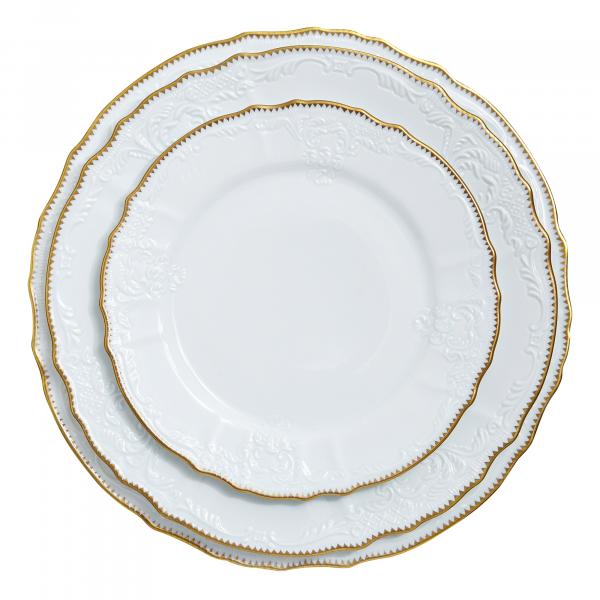 This is a simply elegant collection featuring Anna Weatherley's signature shark's tooth gold banding. The collection works beautifully with all of Anna's lavishly decorated offerings.