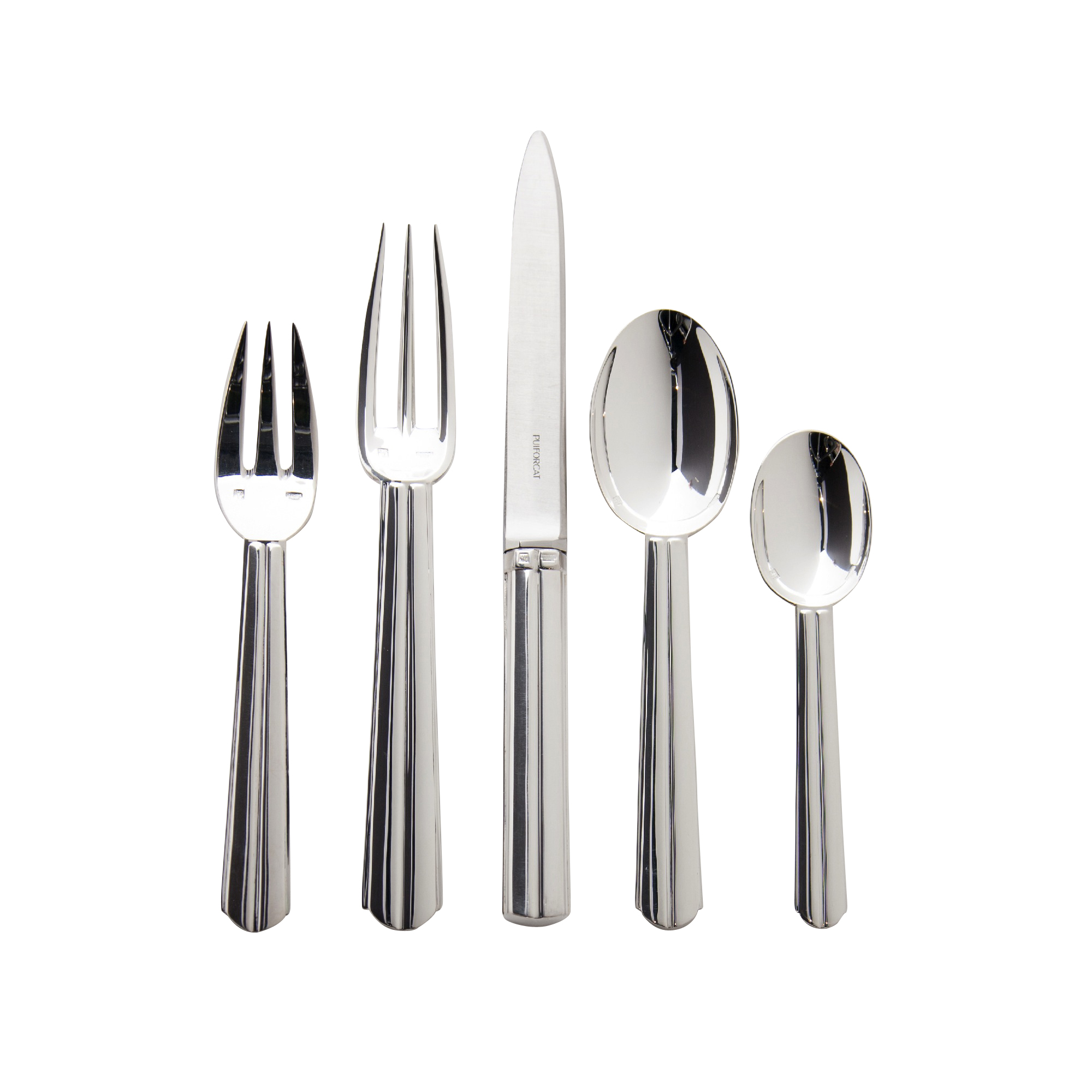 In this silver-plated model, the fluting on the rectilinear handle creates a beautiful contrast of light and shadow.