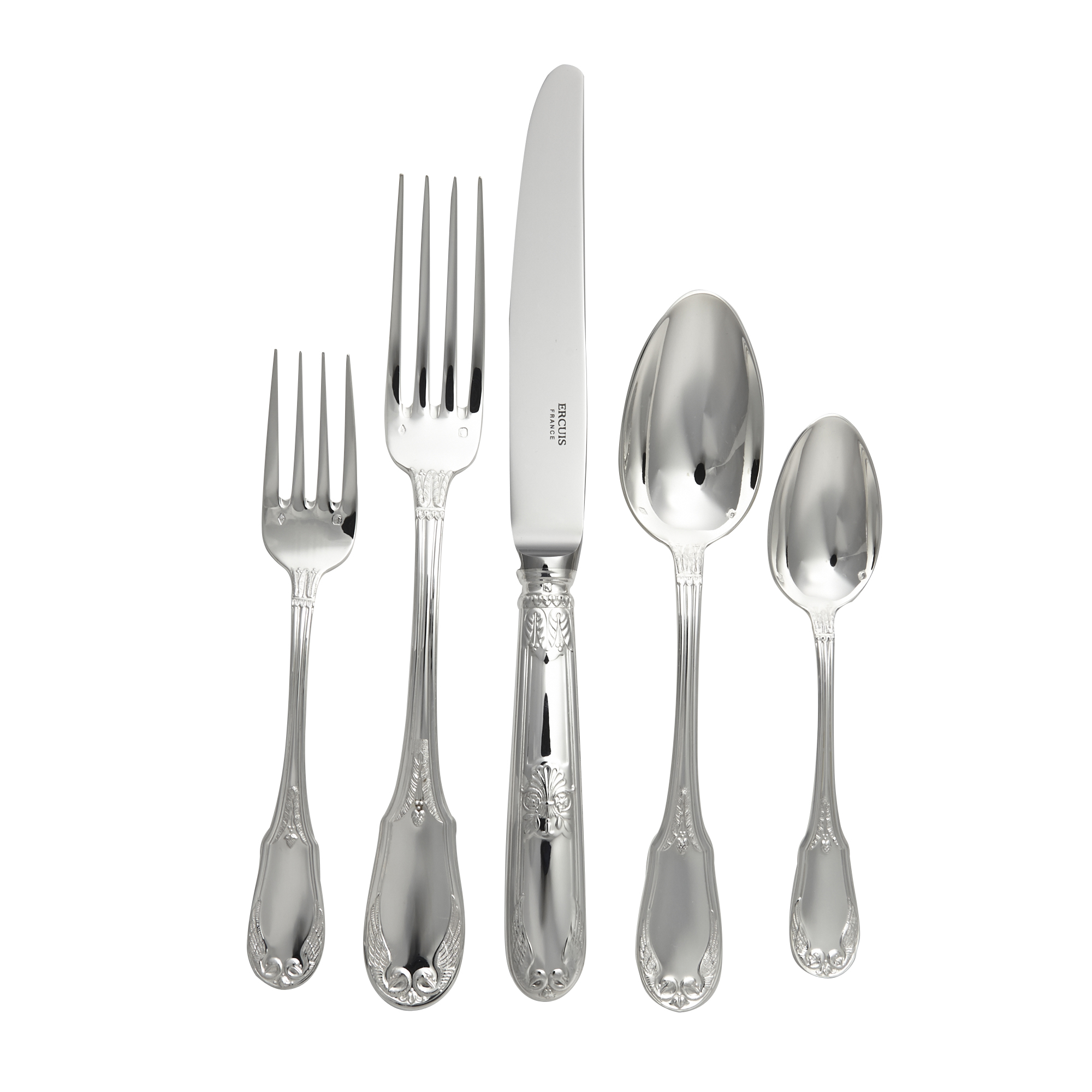 The fine detailing of the Empire collection showcases the exceptional workmanship that Ercuis has become famous for. Decorated with shells, swans, and acanthus leaves, the collection is a wonderful addition to any home.