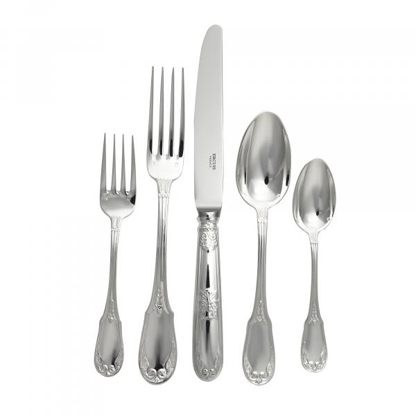 Includes 1 table knife, 1 table fork, 1 dessert fork, 1 dessert spoon, and 1 medium teaspoon