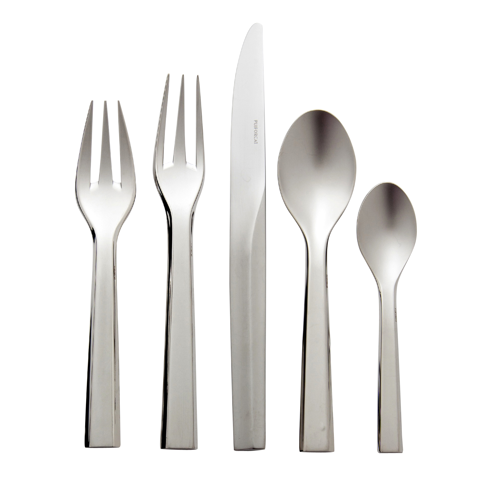 This contemporary model is a variation of the Zermatt flatware, fruit of the collaboration between Puiforcat and designer Patrick Jouin. A combination of matte satin and mirror-polished finishes adds a hint of softness and sheen to the collection.