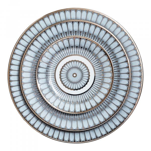 The interweaving of grey and platinum embodies the elegance of a Florentine palace. This plate will take any table from ordinary to extraordinary.