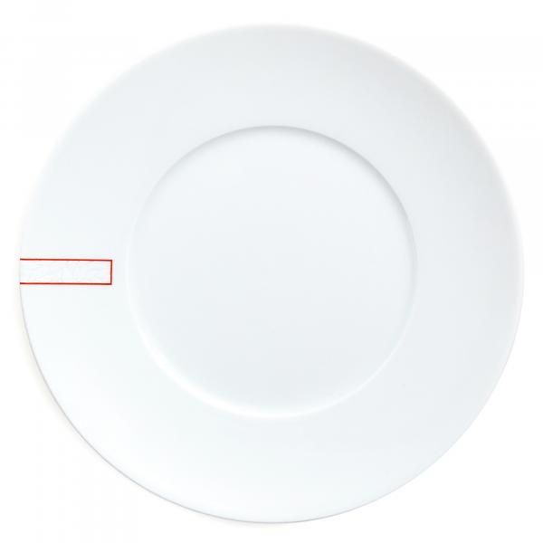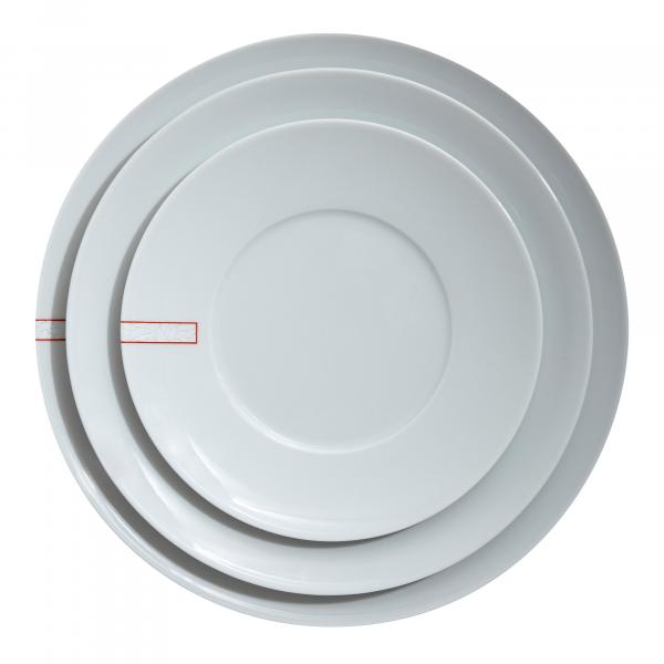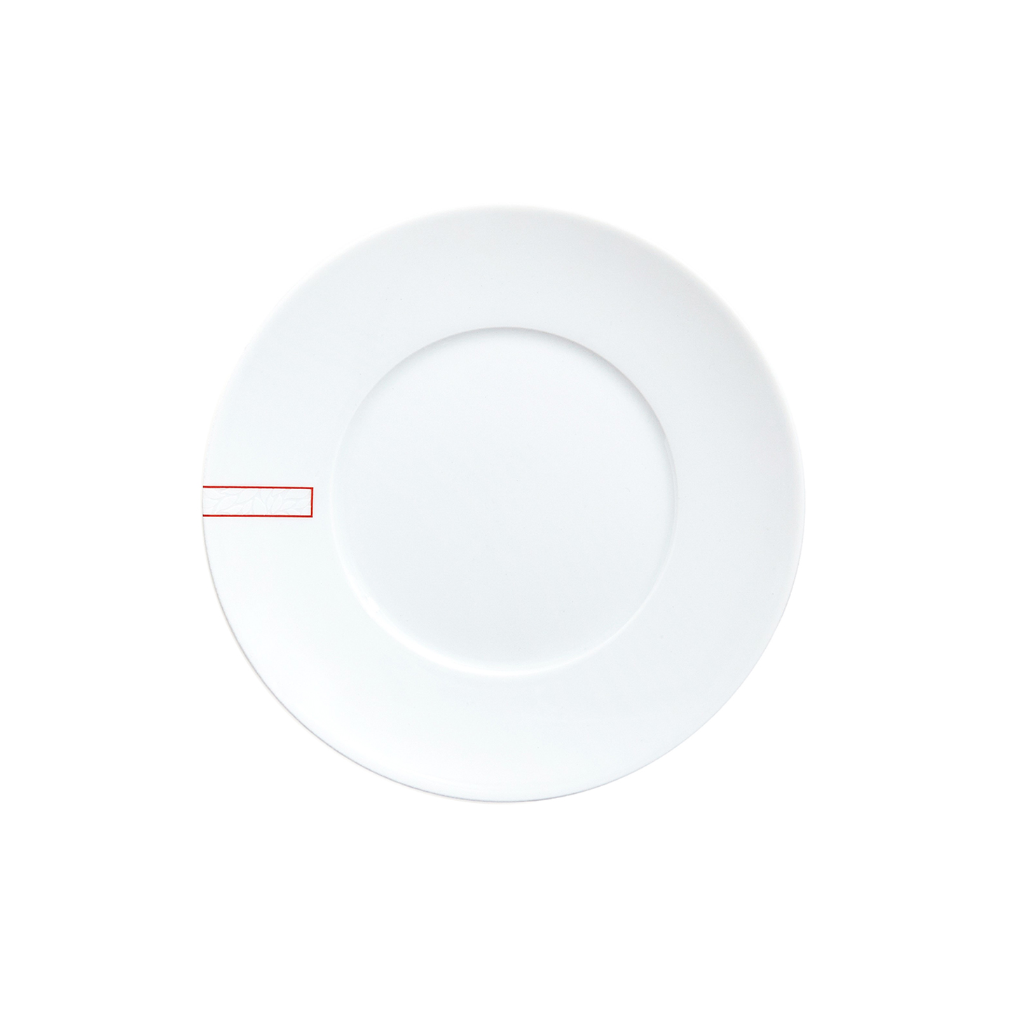 This white plate is adorned by subtle touches of graphic red. The vibrant color only adds character to this endlessly adaptable contemporary design.