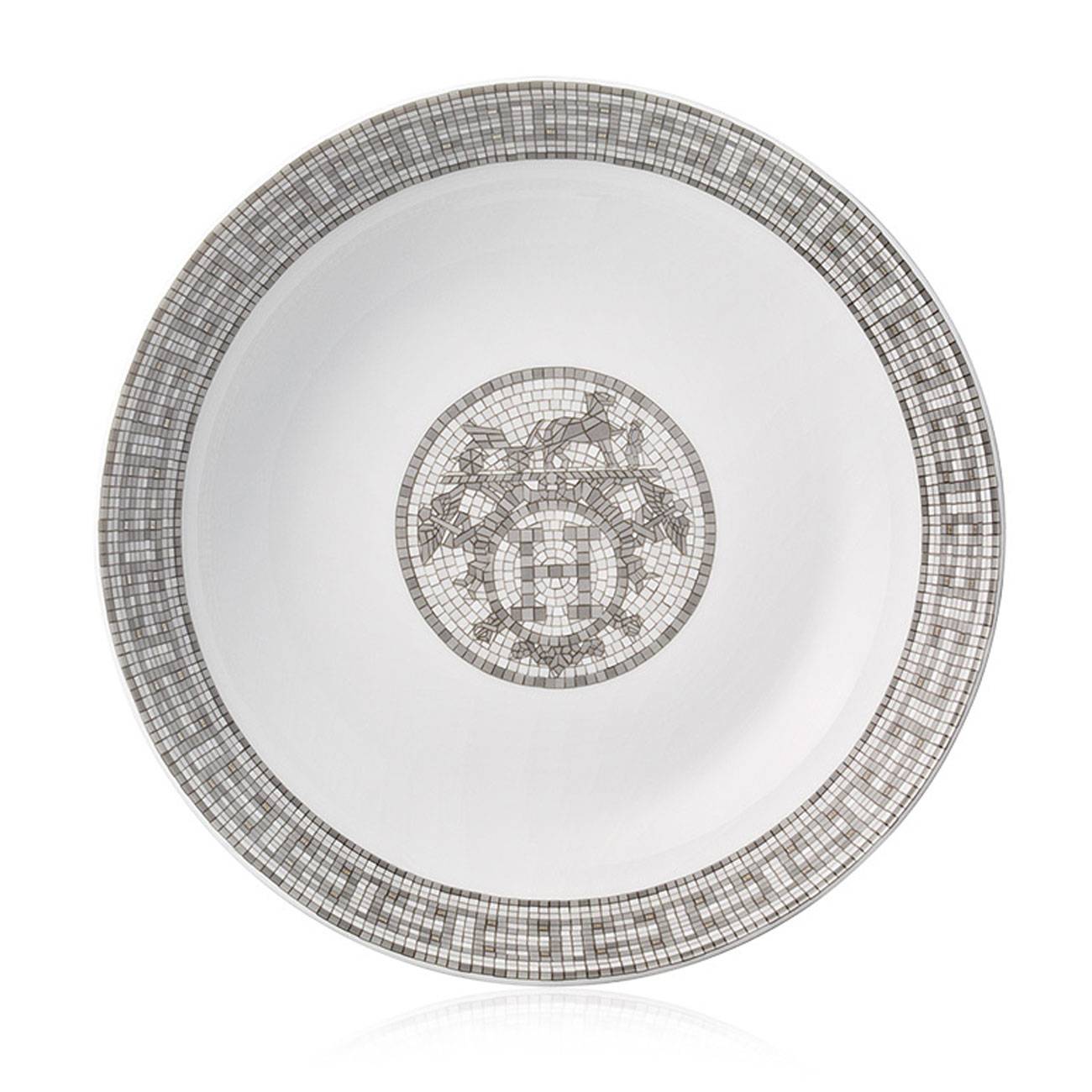 The Mosaique Au 24 series by Hermes draws inspiration from art and architecture. The plates, bowls and saucers in the series are rimmed with geometric patterns and motifs, bearing the House's signature carriage emblem. All these accents have been painstakingly created in the form of tiny mosaic tiles in shades of gray and ochre.