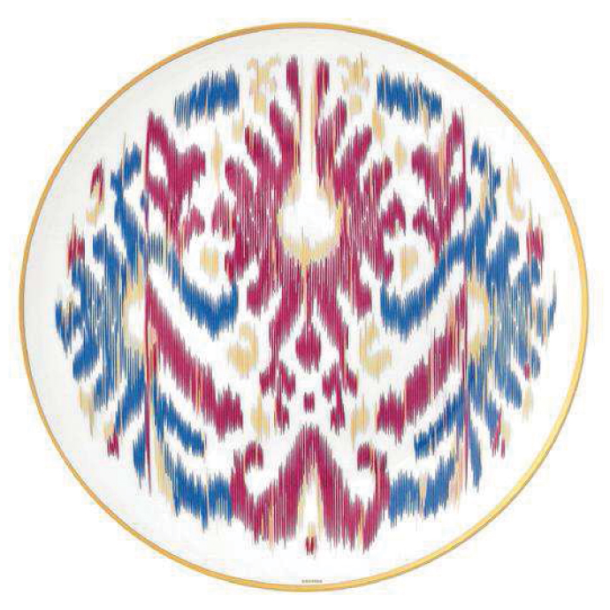 Hermès dinnerware adds a luxurious, yet functional touch to any table. At once playful and refined, the enduring designs are haute couture for the home. The saturated colors and accents of 24-carat matte gold found in Voyage en Ikat are drawn from the exquisite weaving and dyeing technique that originated in Asia.