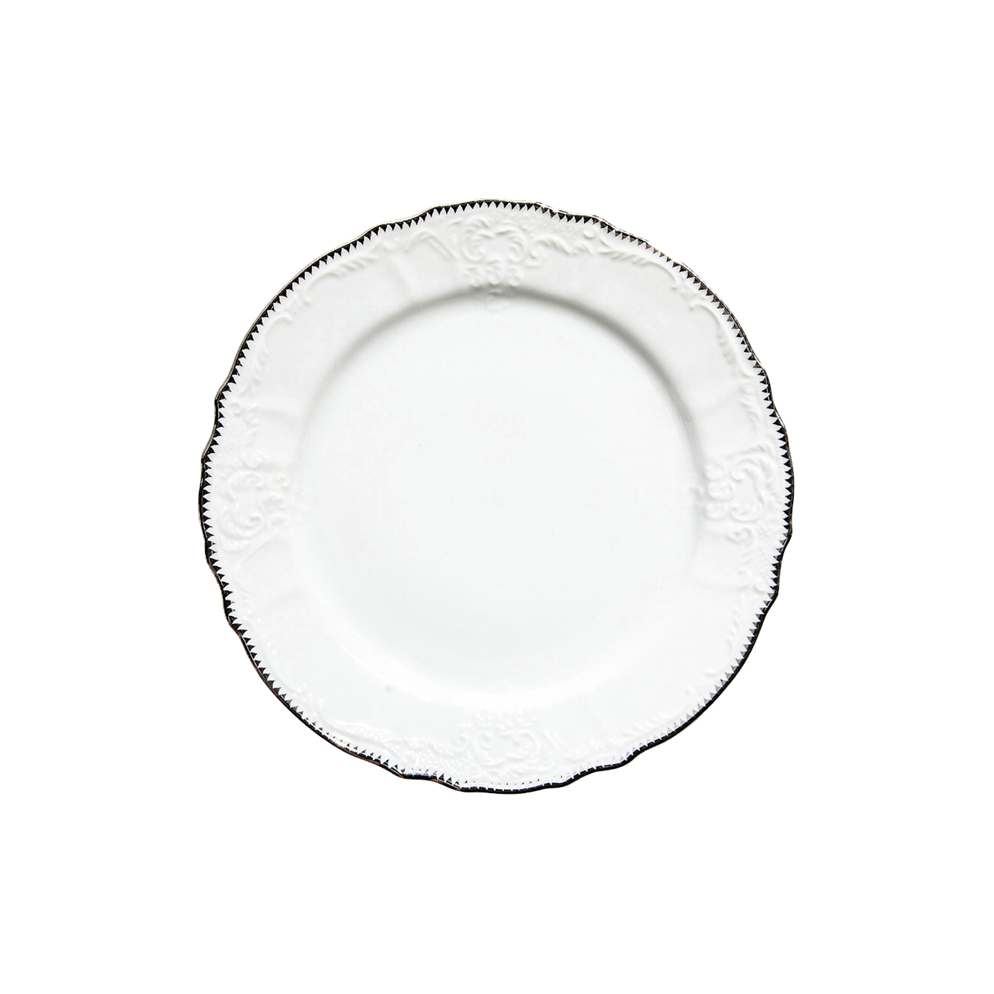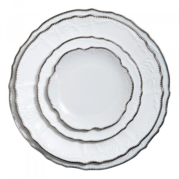 This is a simply elegant collection featuring Anna Weatherley's signature shark's tooth gold banding. The collection works beautifully with all of Anna's lavishly decorated offerings.